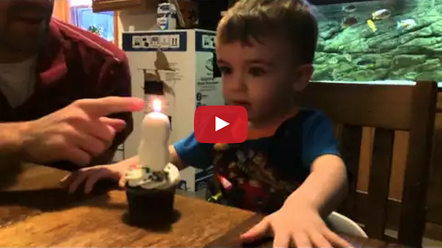 This cute two-year-old can’t quite figure out how to blow out the candle on his birthday cupcake. Thankfully, his quick-thinking father comes up with the perfect solution.