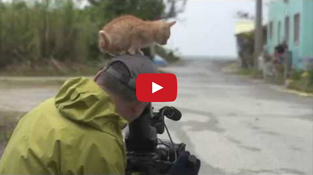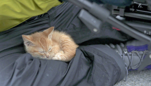 A friendly stray ginger kitten came over to say hello and “help” wildlife photographer and filmmaker Mitsuaki Iwagō while he was filming on the island of Okinawa, Japan. The tiny kitten climbed on Mitsuaki’s shoulders and head before curling up on his lap to take a nap.