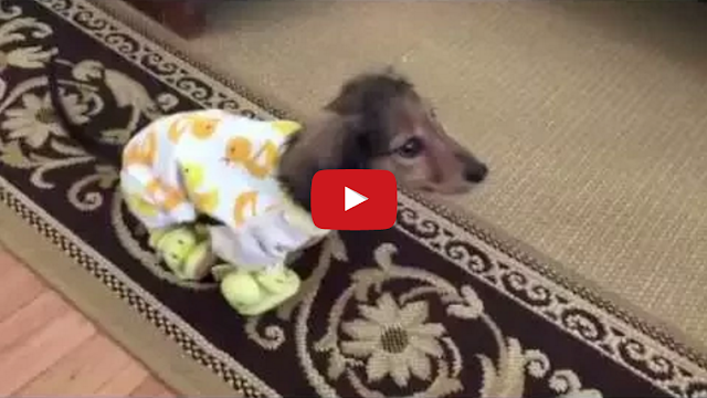 Dachshund Puppy Shows Off Her New Ducky PJs