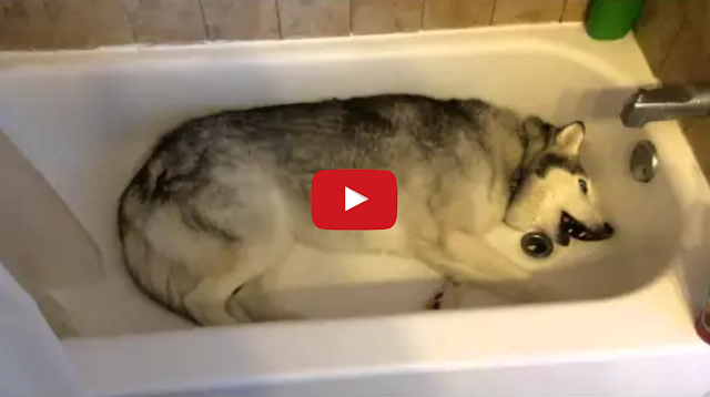 Zeus, the Siberian husky dog, who loves playing in water in the bathtub, throws a toddler-like fit when his human, Lindsay Fleishman, refuses to turn the water on because it’s time for his walk.