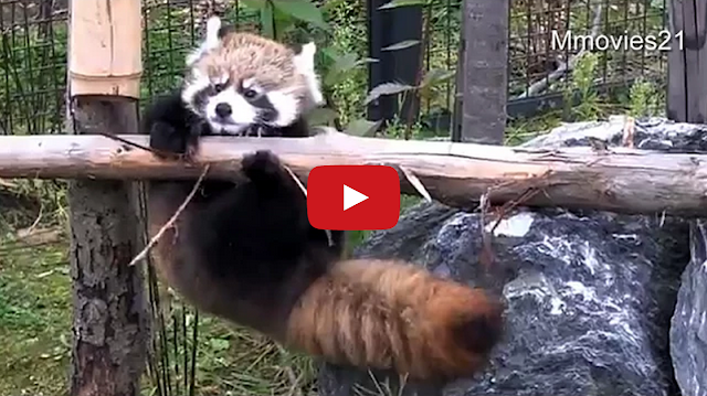Baby Red Panda Attempts to Walk Across Log for the First Time