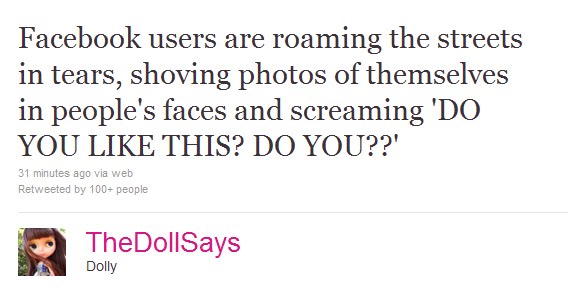 Facebook is broken (tweet of the day) ByTastefully Offensive September 23, 2010 [context: facebook was down for about 2.5 hours today.]