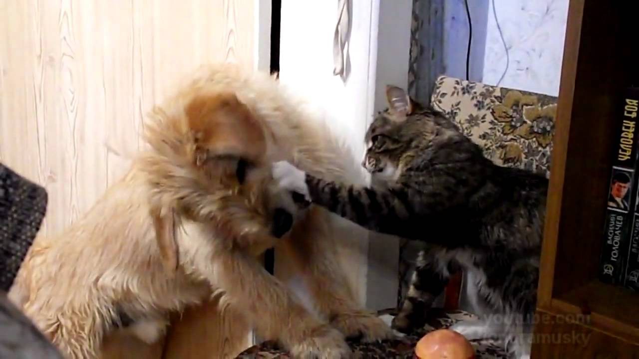 Dog and Cat Fight Over Cheeseburger