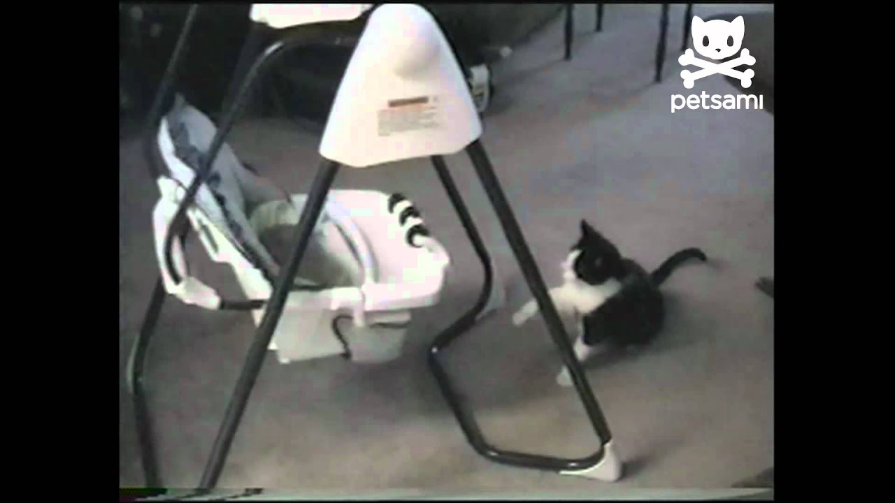 Cat Rocks Baby in a Cradle