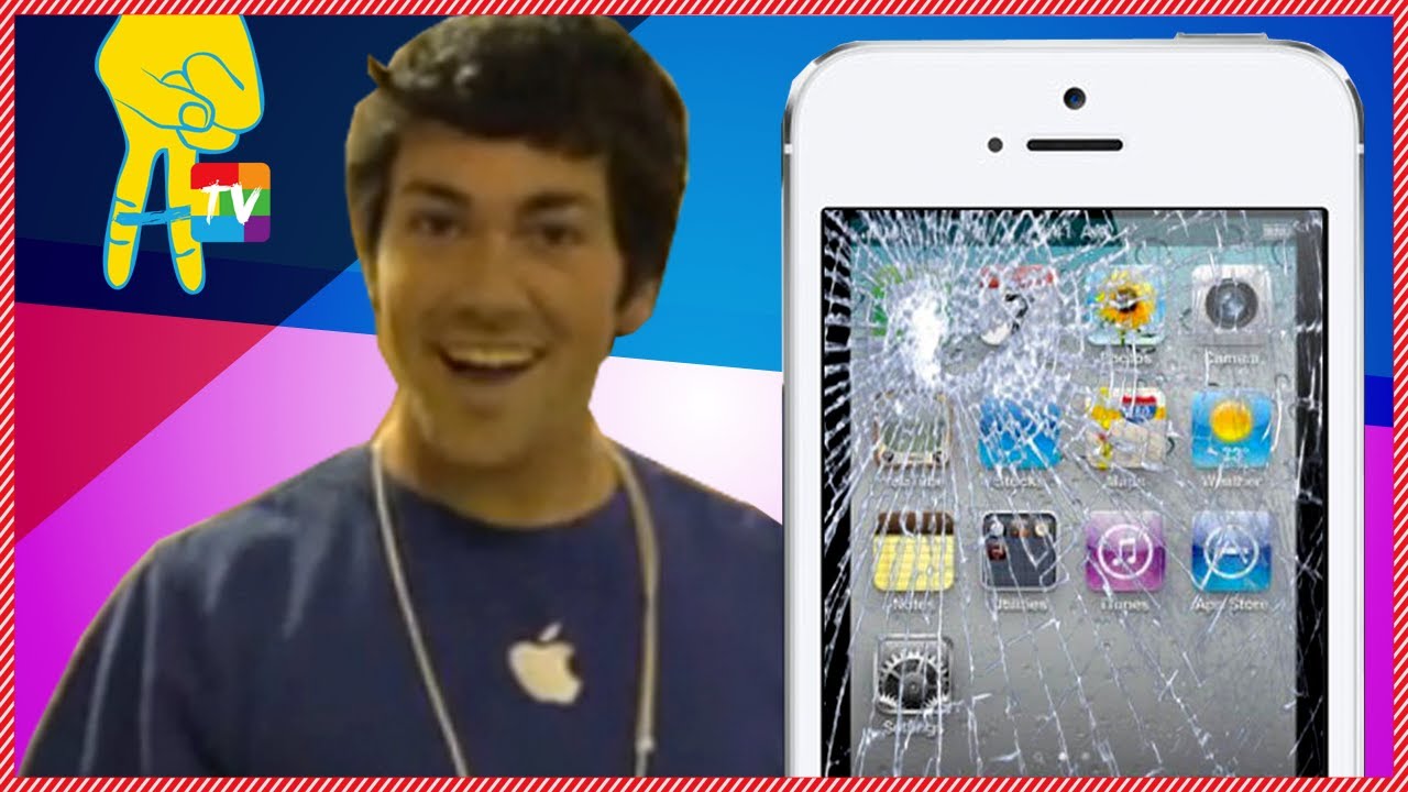 A prankster pretends to drop boxes full of the new iPhone 5 in front of customers who have been waiting in line for days.