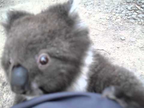 Baby Koala Climbs Girl’s Leg for a Hug
