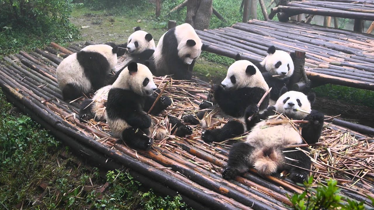 Panda Breakfast Feast ByTastefully Offensive October 17, 2012 A group of 2-year-old pandas from Chengdu, China chow down on a bamboo breakfast buffet. [tamirkat/via sayomg]