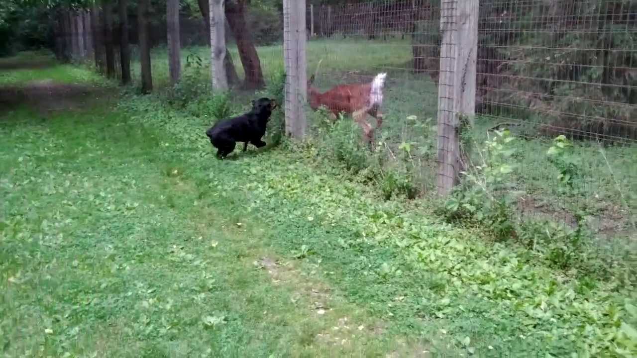 Deer and Rottweiler Play Together