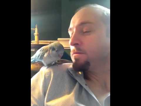 Baxter the Blue Quaker Parrot Gives Kisses
