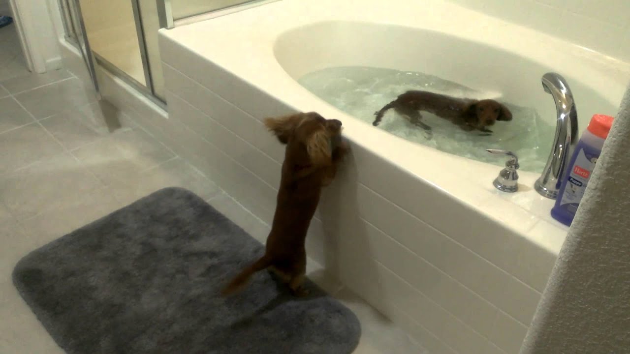 Mini Dachshunds Love Bath Time