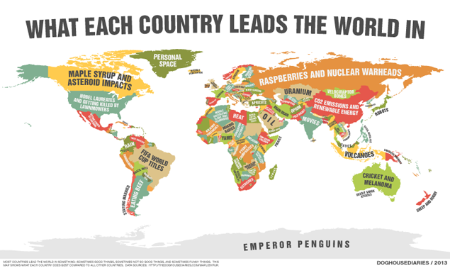 What Each Country Leads The World In ByTastefully Offensive October 18, 2013 Bigger, zoom-able version [doghousediaries]