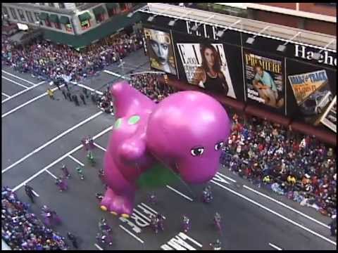 High winds and a lamp post took down the Barney the Dinosaur ballon during the 1997 Macy’s Thanksgiving Day Parade in New York City.