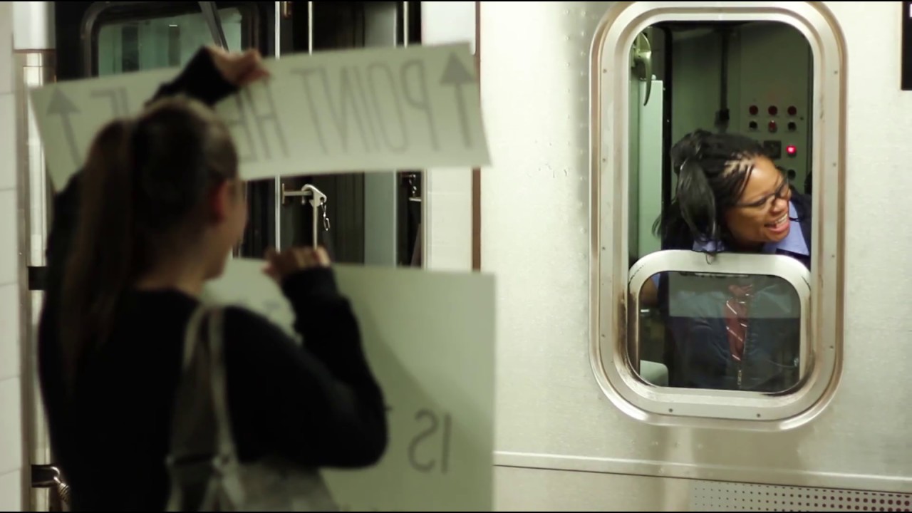 Yosef Lerner and Rose Sacktor made signs to take advantage of a strange rule that requires all NYC subway conductors to point at a black and white sign at every stop.