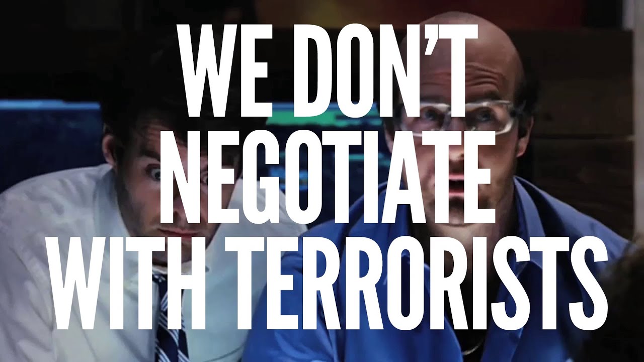 ‘We Don’t Negotiate With Terrorists’ Movie Supercut ByTastefully Offensive November 25, 2013 Previously: ‘Saturday Night Live’ Cast Members Cracking Up Supercut (PG-13 language) [slacktory]