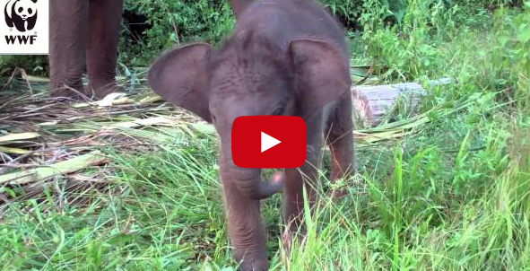 Baby Elephant Learns to Use Her Trunk