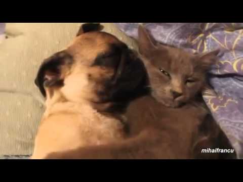 Cat Cuddles With Snoring Pug