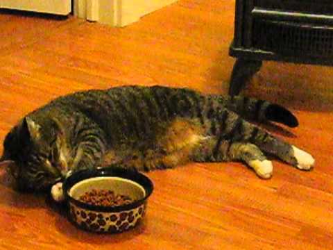 Lazy Cat Eats While Lying Down