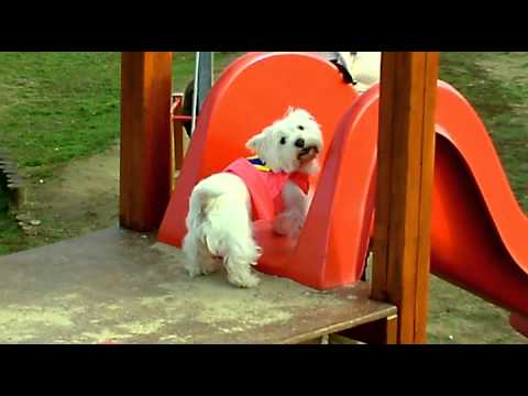 Cape-Wearing Westie Loves Slides