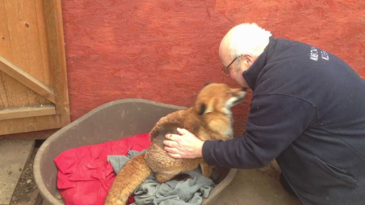 Dawn the Red Fox Enjoys Belly Rubs From Her Caretaker