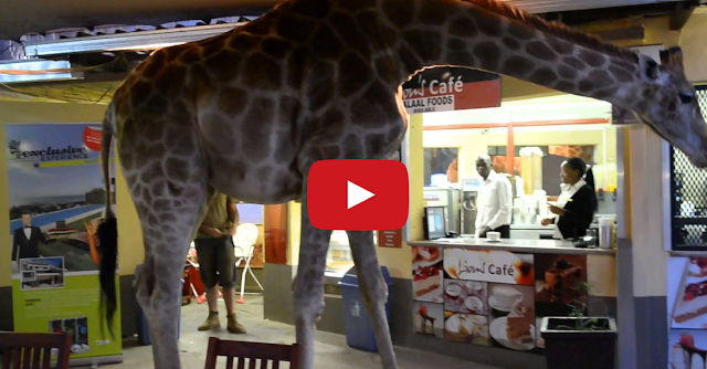 Giraffe Walks Into Restaurant by Tastefully Offensive Perdy the giraffe casually wanders through the restaurant at the Lion Park animal sanctuary in Johannesburg, South Africa. [tambako/via]