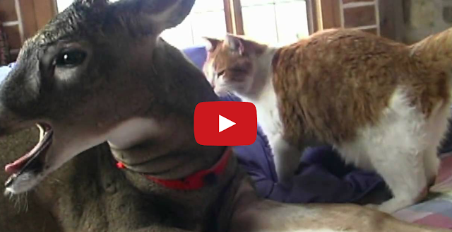 Hoppy the Deer Grooms a Cat ByTastefully Offensive April 13, 2014 Hoppy gives a bath to his pal, Tiptree the cat. [hoppythedeer/cuteoverload]