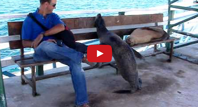 Bully Sea Lion Steals Bench from Tourist by Tastefully Offensive Filmed on Baltra Island in the Galápagos. [vatravelers/sayomg]