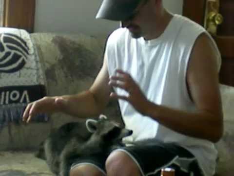 Playful Baby Raccoon Jumps Into Guy’s Arms