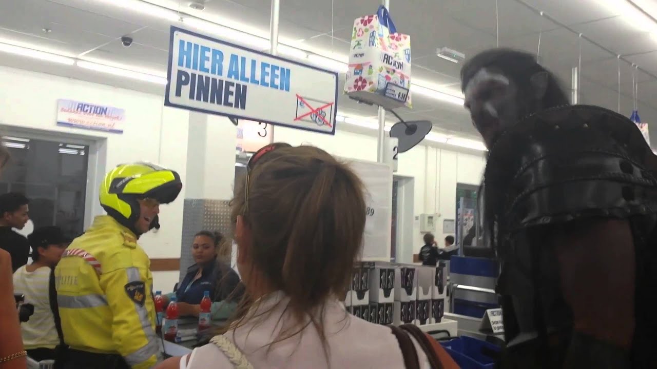 After helping a makeup artist friend with a graduation project which required him to dress as an Uruk-Hai Orc from Lord of the Rings, Olivier Richters decided it would be fun to surprise some shoppers at a local Dutch grocery store.