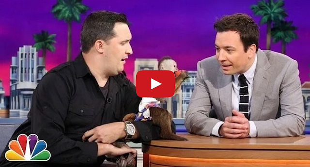 Animal expert Jeff Musial introduces Jimmy Fallon to a baby Capuchin monkey, a white tiger cub, and a father-son albino alligator duo.