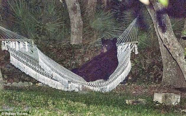 Bear Relaxes in Hammock in Florida Man’s Backyard by Tastefully Offensive A black bear was spotted lounging in a hammock for 20 minutes in a Daytona Beach neighborhood. [wesh2news/arbroath] (photo by Rafael Torres)