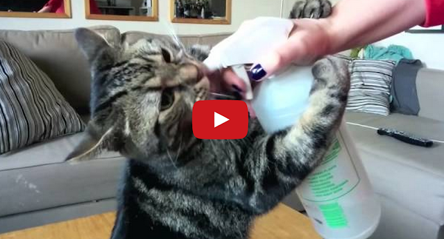 Joey the Cat Loves Drinking Water From a Spray Bottle