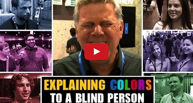 YouTuber Tommy Edison, who has been blind since birth, asks Vidcon attendees if they can describe the colors red, green, purple, gray, blue, brown, and pink.