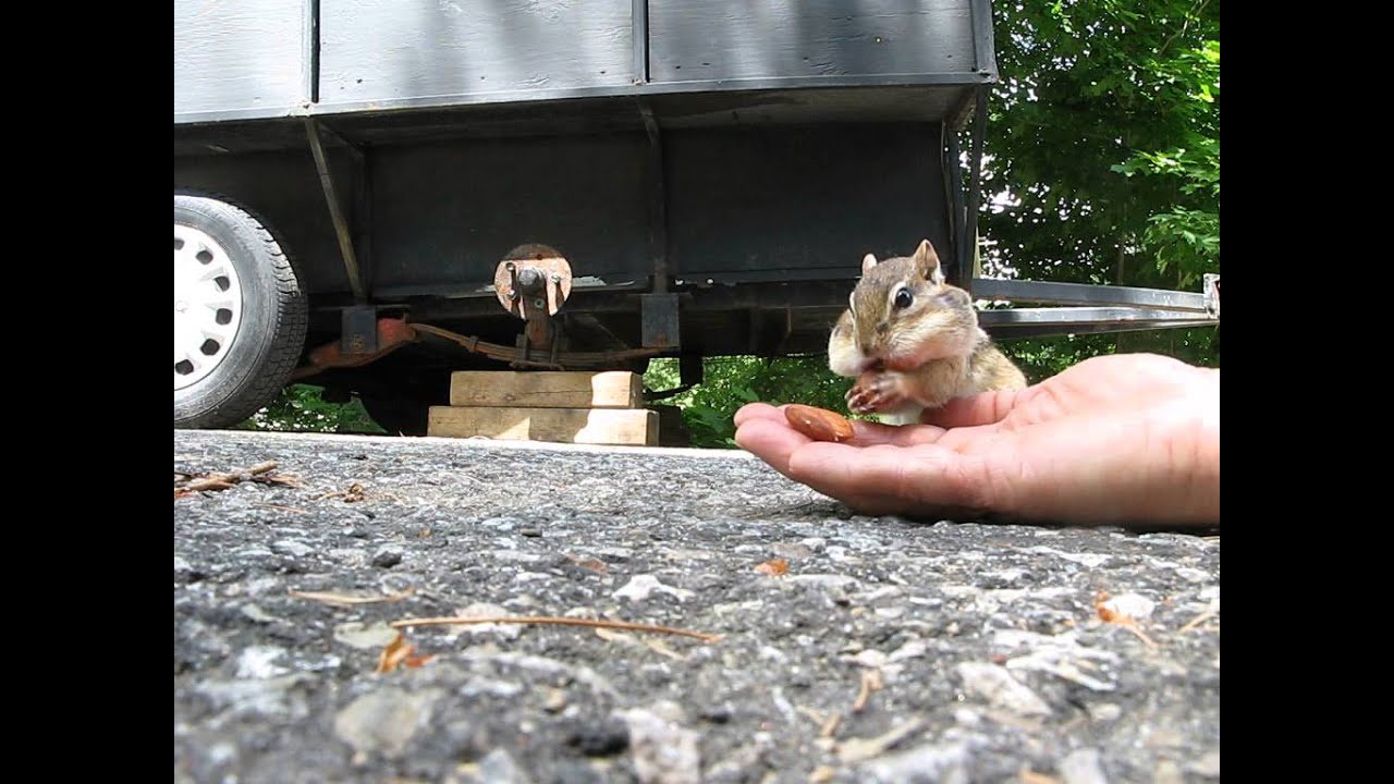 Chipmunk Stuffs Cheeks With Almonds From Woman’s Hand