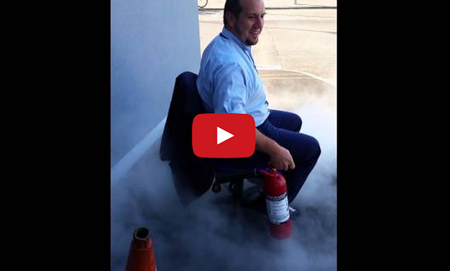 Guy Attempts to Ride a Fire Extinguisher-Powered Office Chair by Tastefully Offensive [andrew porter]