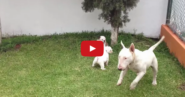 Rowdy Bull Terrier Tries to Play With Two Bulldog Puppies by Tastefully Offensive [ivanbullpfox/via dpf]