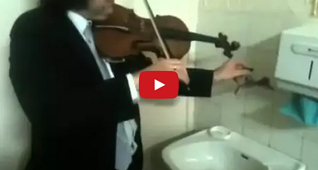 Violinist Jacek Dzwonowski Harmonizes With Bathroom Faucet by Tastefully Offensive [altravoltaquartet/via]