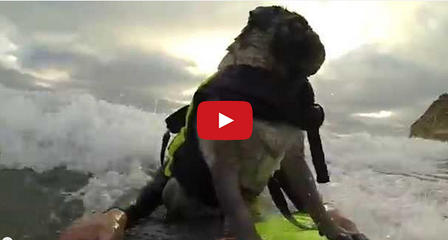Brandy the Pug Goes Surfing With Her Human by Tastefully Offensive Filmed at Del Mar’s dog beach in California. [jonny dorman]