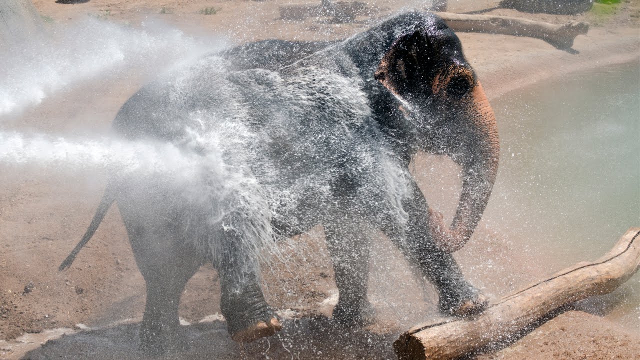 Elephant Enjoys Hose Down From Firefighters at Phoenix Zoo