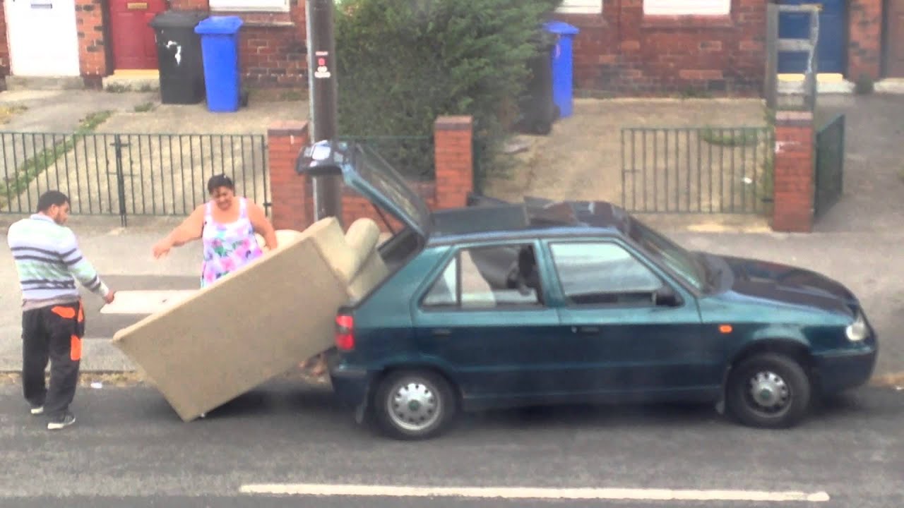 Family Struggles to Fit Couch Into Car That’s Way Too Small ByTastefully Offensive August 19, 2014 [yorkshiretoon/via neatorama]