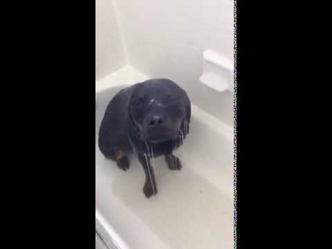 Lena the Rottweiler Loves Taking Showers