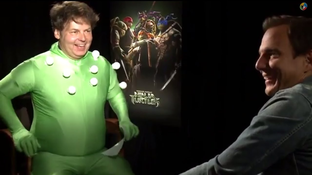 Comedian and Regal Cinemas correspondent, Rich Fulcher, talks CGI with ‘Teenage Mutant Ninja Turtle’ star, Will Arnett, while wearing a self-made motion capture suit.