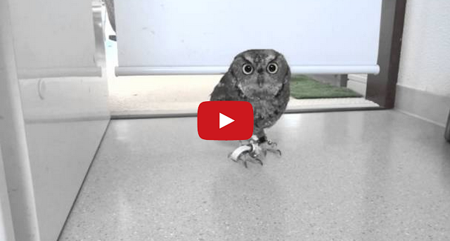 Adorable Wide-Eyed Screech Owl Makes a Grand Entrance