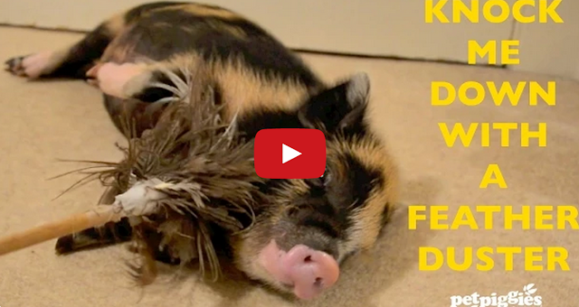 Cute Micro Pig Collapses When Touched With Feather Duster ByTastefully Offensive September 2, 2014 [petpiggies]