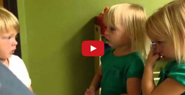 Mom Tara Willmott films as her son and two twin sisters argue over whether it’s raining or “spwinkle-in” (sprinkling) outside, until a poke to the heart ends the heated debate.
