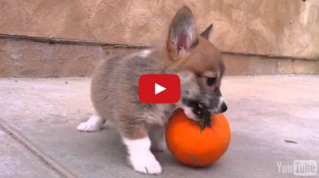 Maya the corgi puppy adorably shows a small pumpkin who’s boss. If you’re curious, the music is the “Fall theme” from the classic Nintendo game, Harvest Moon 64.