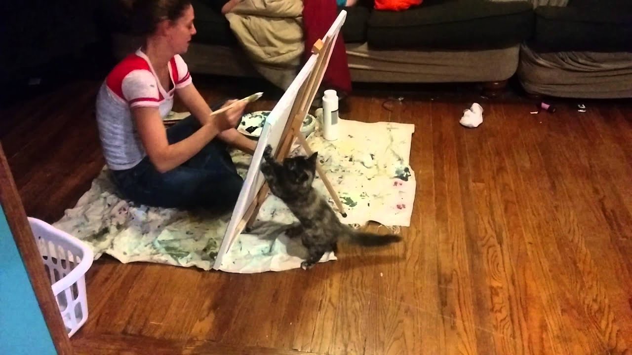 Kitten vs. Painting ByTastefully Offensive October 4, 2014 A kitten playfully attacks the back of a girl’s canvas while she’s trying to paint. [jim nutt/via dpf]