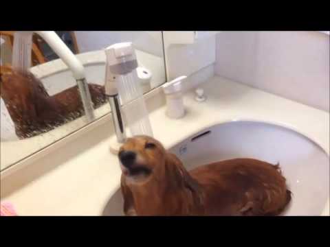 Long-Haired Dachshund Loves Taking Showers in the Sink ByTastefully Offensive October 1, 2014 “…if Fabio was a dachshund.” –slothO_o Related: Lena the Rottweiler Loves Taking Showers [tubumari/via gifsboom]