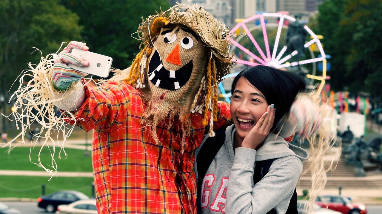 For some people fall is all about family fun like apple-picking and hay rides; and for others it’s all about the terrifying monsters of halloween. These friendly folks were expecting the former as they prepared to take a silly photo with a happy scarecrow. That is, until he takes off his mask and reveals the zombified blood-craving face underneath.
