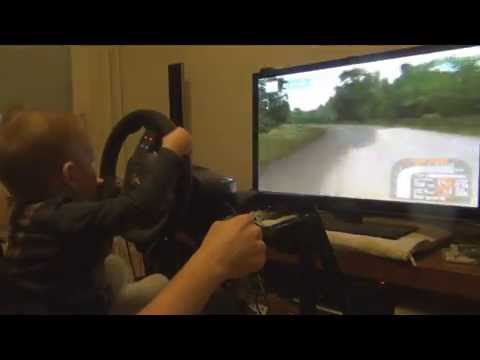 3-year-old Konsta skillfully plays the PC racing game, Richard Burns Rally, with a little shifting help from his dad. Amazingly, this is only Konsta’s third attempt at playing the game.