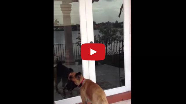 2-year-old Beer the dog doesn’t need any human help to open the backyard door so he can come inside. He hasn’t quite mastered closing the door behind him, though.